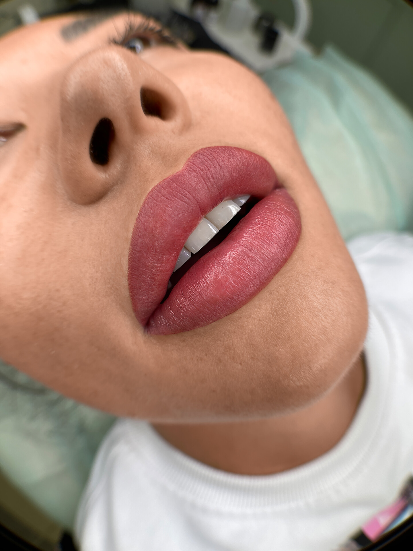 После окончания процедуры вы можете смело выходить на улицу и не переживать. В зоне нанесения перманентного макияжа будет лёгкое покраснение, но его будет практически незаметно, да и оно пройдёт максимум за пару часов. В первую неделю татуаж выглядит немного ярче, чем запланировано.